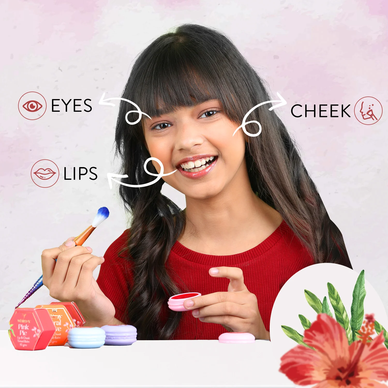 Whimsy Lip & Cheek Tint, is the perfect addition to your child’s makeup! Our all-natural and chemical-free formula is 100% vegetarian and vegan, making it skin-friendly and safe for prolonged use. Enriched with jojoba oil, shea butter, Silicone Pigment, and Vitamin E, our tint provides deep moisturization for soft, plump, and healthy-looking lips and cheeks. Â